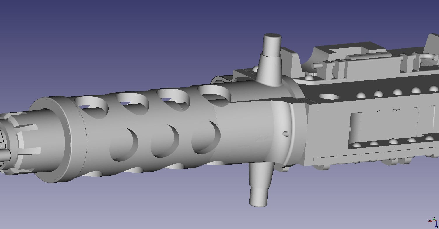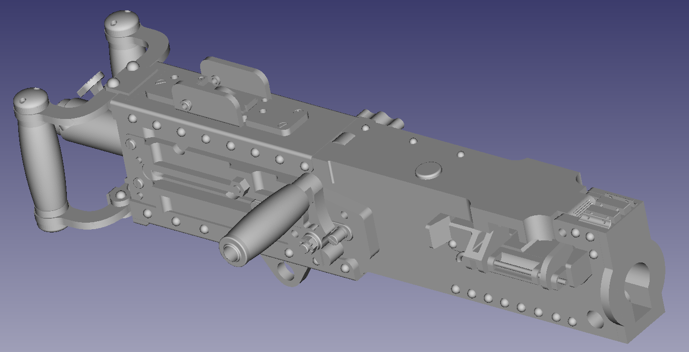 ![]() 3D Printed M2 Water cooled conversion set. Set is intended to convert a Dragon (or similar) M2HB into the water cooled version of the Browning M2. The set includes a new front barrel jacket section, and a set of replacement rear ladder sights. The jacket is fully detailed and is a single print with the fittings and front sight fitted in place. The rear sight is a 2 peice assembly where the sight can be made in the open or closed state. The set also comes with a pair of covers for the two top fittings. A length of chain is also supplied. MG NOT INCLUDED...$65.00 each set