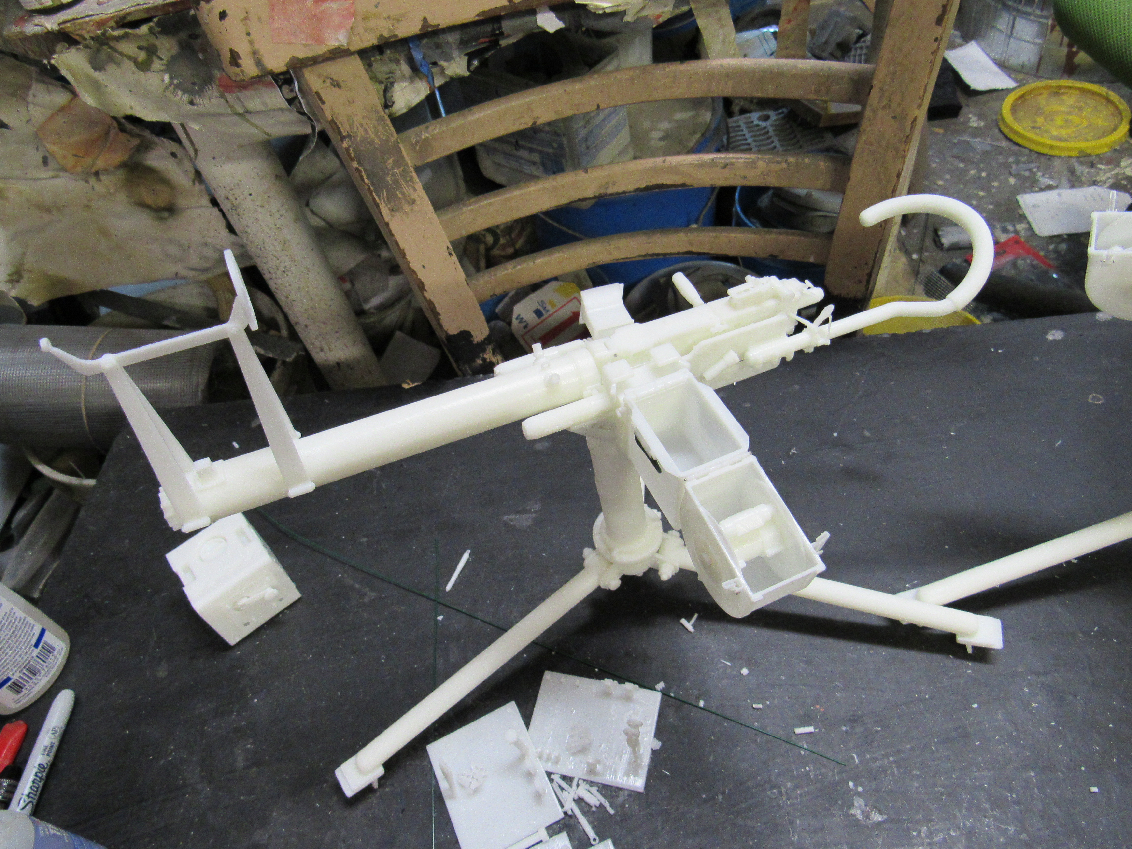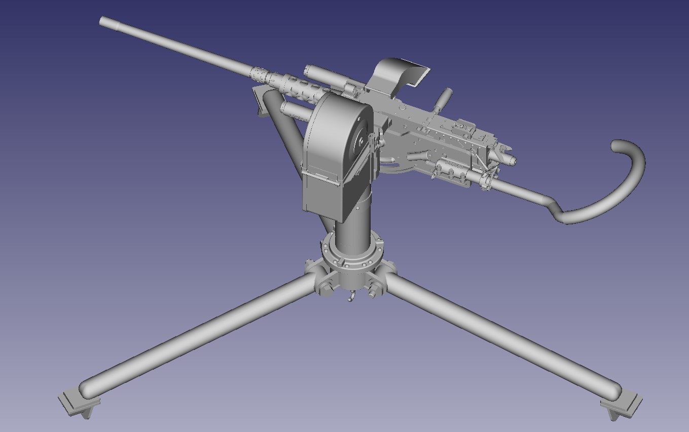 ![]() 3D Printed US M2 AA Heavy tripod mount full kit style 4 air cooled. This unit is fully detailed complete with all the detailing of the real unit. This would include the counter balancer gear system, the coil spring recoil dampening system, the paddle trigger assembly, the gunner waist hook, and the spent link chute. The unit also comes with the air cooled M2HB Browning. everything is 3D printed, and most of the kit's components are integrally printed as a single unit to cut down on part count and to simplify the build...$250.00 each kit