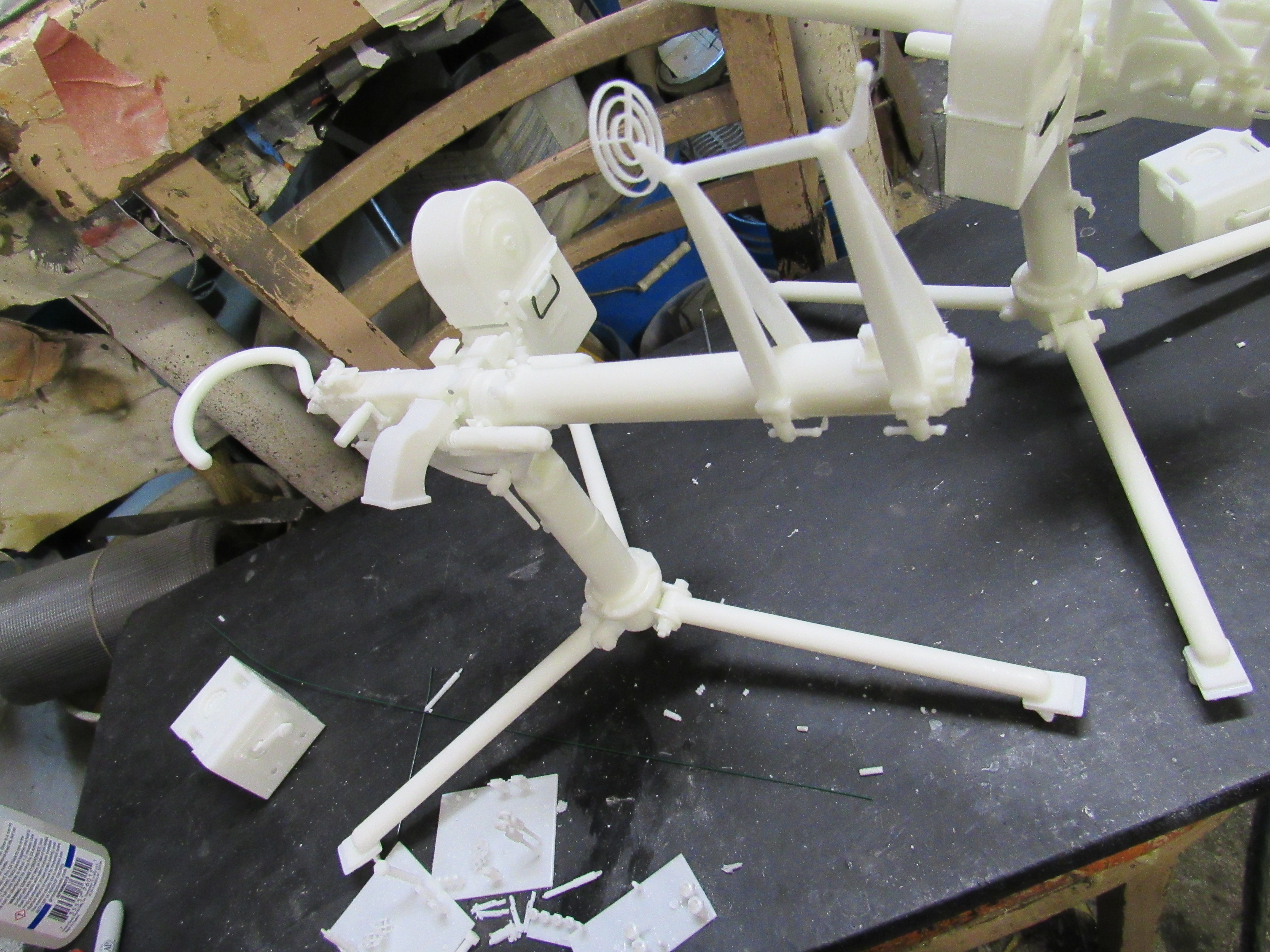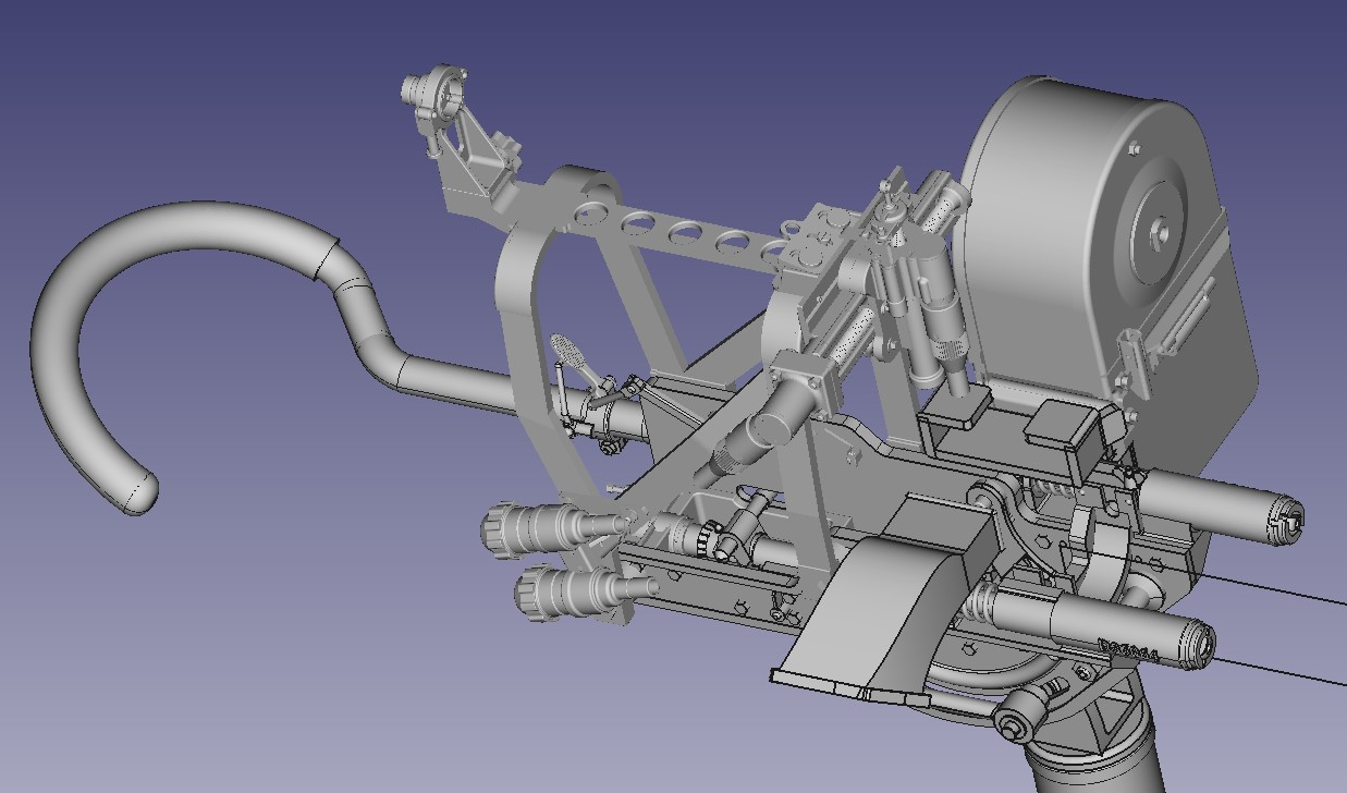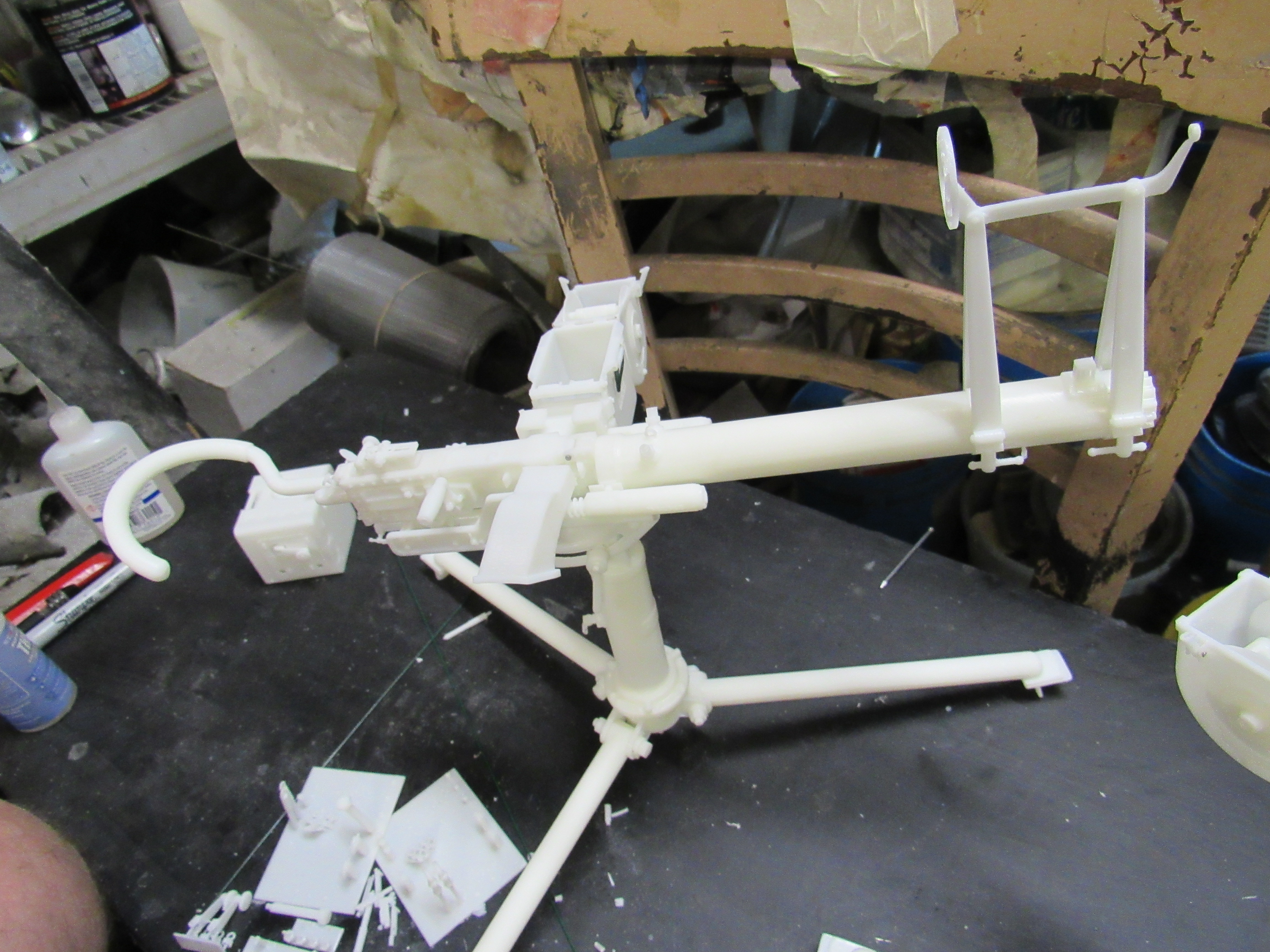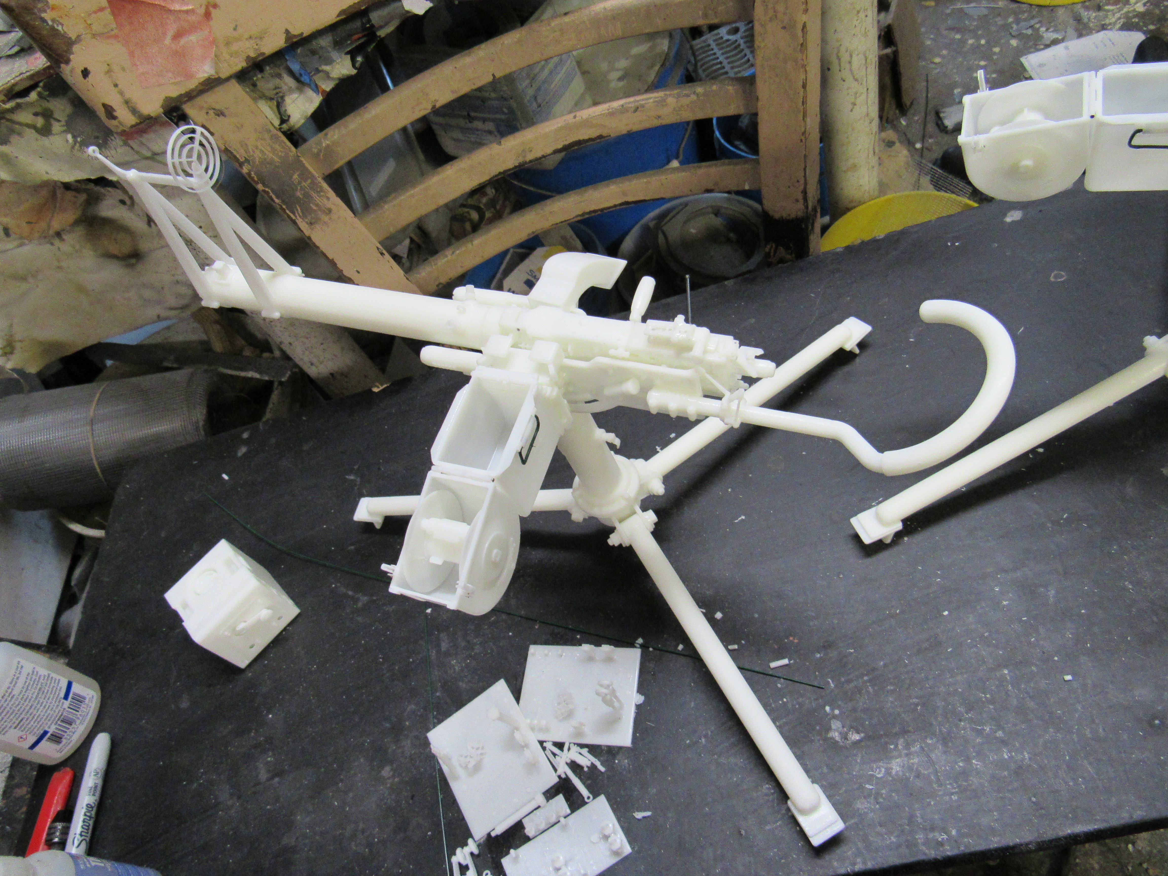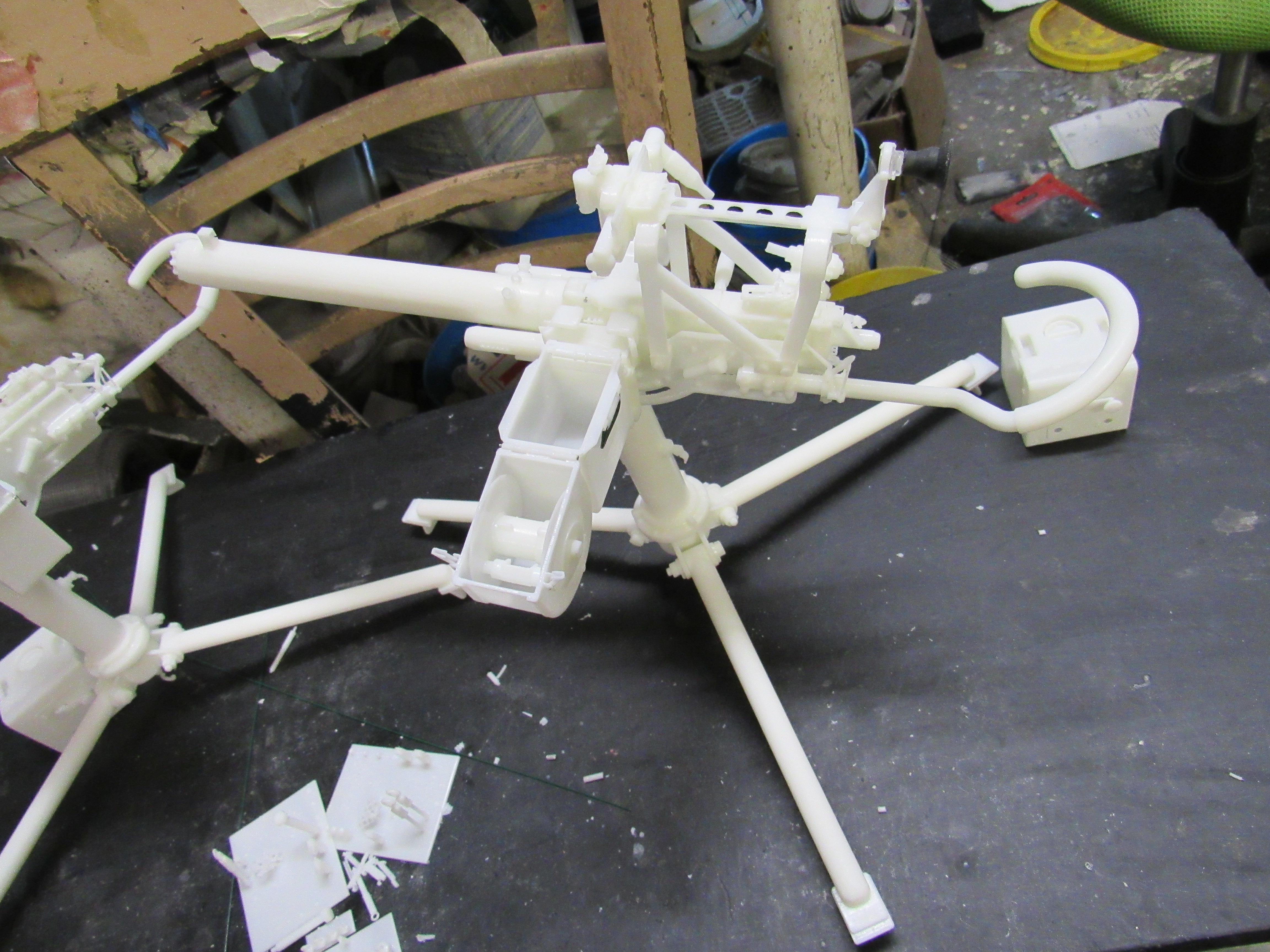 ![]() ![]() ![]() ![]() 3D Printed US M2 AA Heavy tripod mount full kit style 6 air cooled Long optic. This unit is fully detailed complete with all the detailing of the real unit. This would include the counter balancer gear system, the coil spring recoil dampening system, the paddle trigger assembly, the gunner waist hook, and the spent link chute. The unit also comes with the air cooled M2HB Browning MG, metal Chain, Tombstone 200 rnd ammo can, and water tube details. Everything is 3D printed, and most of the kit's components are integrally printed as a single unit to cut down on part count and to simplify the build. Style 2 has an elevated optic tower printed to the cradle. Also found on the tower are the rear optic mount, translucent resin long optic, front sight base, front sight mount, and the adjustment knobs for front sight elevation and windage adjustment...$270.00 each kit