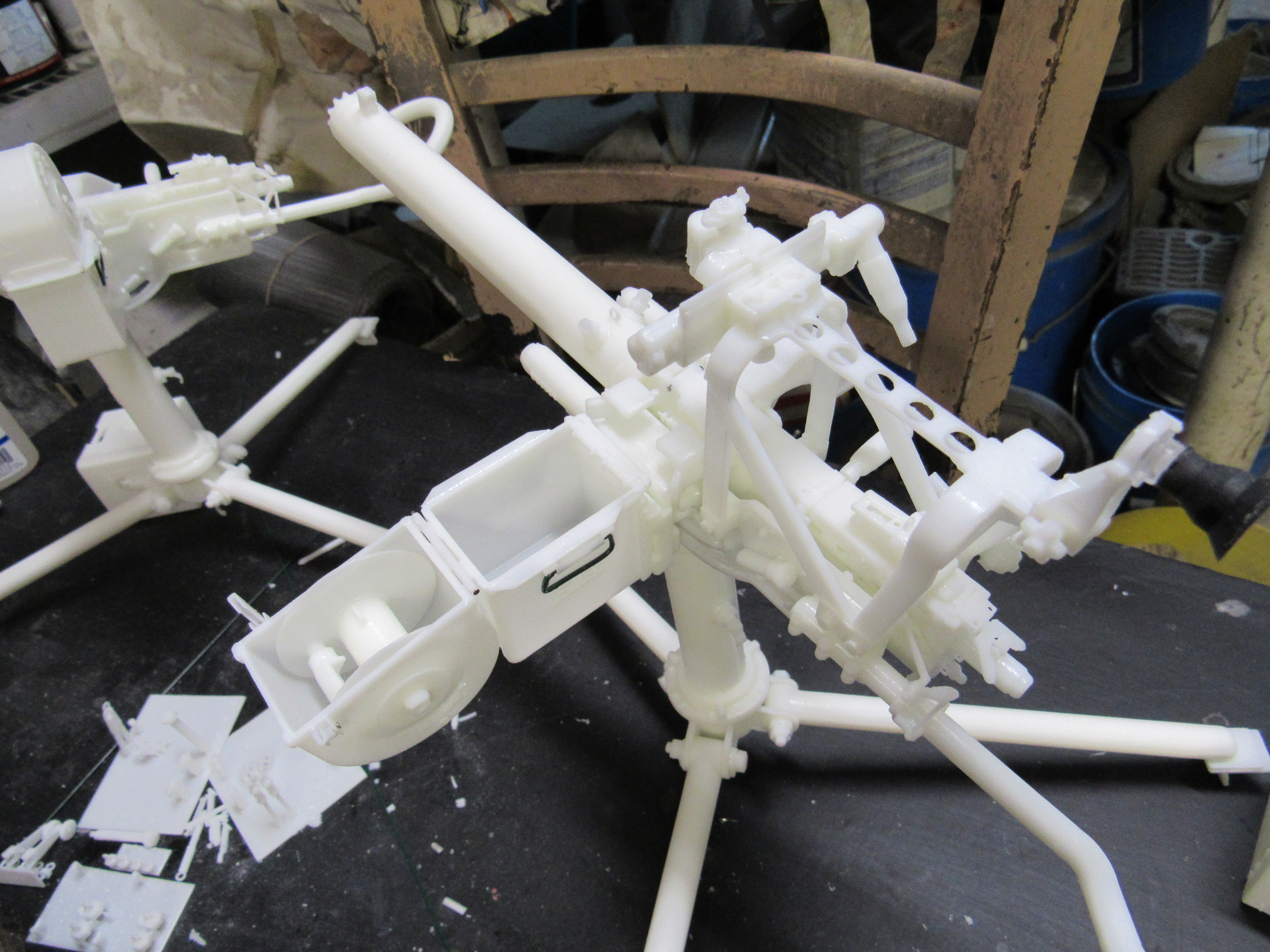 ![]() 1/6th scale M2a1 AA heavy tripod mount w/ water cooled M2 HMG built model style 3 "Tora! Tora! Tora!. The model is built from the ECA 1/6th scale 3D printed M2AA style 2 kit listed below. The kit comes pre built / painted and is ready for display. The set comes with the tripod mount, the water circulation tank, hoses, water cooled M2, and 200rnd tombstone ammo can. The model is offered in 2 options, fully weathered and clean. Clean (painted and unweathered)...$350.00 each Weathered...$400.00 each *Due to the items being hand built/ painted pre built models will take apporx, 1 week longer to process than the unbuilt kit version 1/6th scale M2a1 AA heavy tripod mount w/ water cooled M2 HMG built model style 2. The model is built from the ECA 1/6th scale 3D printed M2AA style 2 kit listed below. The kit comes pre built / painted and is ready for display. The set comes with the tripod mount, the water circulation tank, hoses, water cooled M2, and 200rnd tombstone ammo can. The model is offered in 2 options, fully weathered and clean. Clean (painted and unweathered)...$370.00 each Weathered...$410.00 each *Due to the items being hand built/ painted pre built models will take apporx, 1 week longer to process than the unbuilt kit version 3D Printed US M2 AA Heavy tripod mount full kit style 3 "Tora! Tora! Tora!". This unit is fully detailed complete with all the detailing of the real unit. This would include the counter balancer gear system, the coil spring recoil dampening system, the paddle trigger assembly, the gunner waist hook, and the spent link chute. The unit also comes with the Water Cooled M2 Browning water Jacket w/ the front elevated spider AA Sight, the water circulation tank, metal Chain, Tombstone 200 rnd ammo can, and water tube details. The set also includes a M2 HMG receiver, everything is 3D printed, and most of the kit's components are integrally printed as a single unit to cut down on part count and to simplify the build...$250.00 each kit