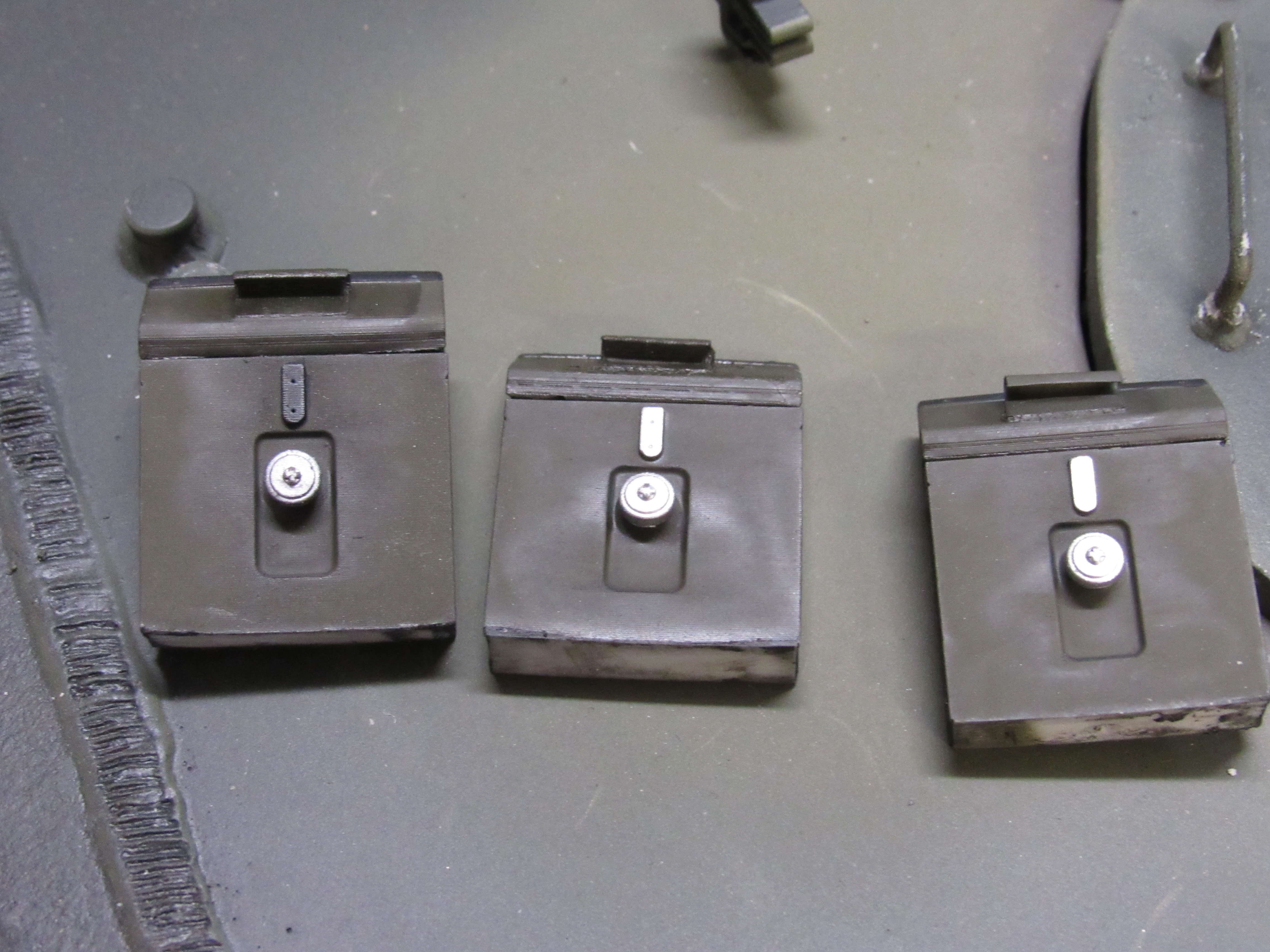 HD 3D Printed US AFV tie down handle set. Set includes several tie down handles which are found on the sides and interior of many US AFV for strapping down equipment...$25.00 each set 3D Printed US AFV Bow M1919 MG ball set. Set includes 2 options of M1919 Barrel front end sections, outer ball, inner ball and pivot mechanism...$30.00 Each set
