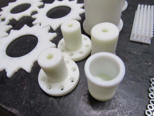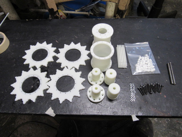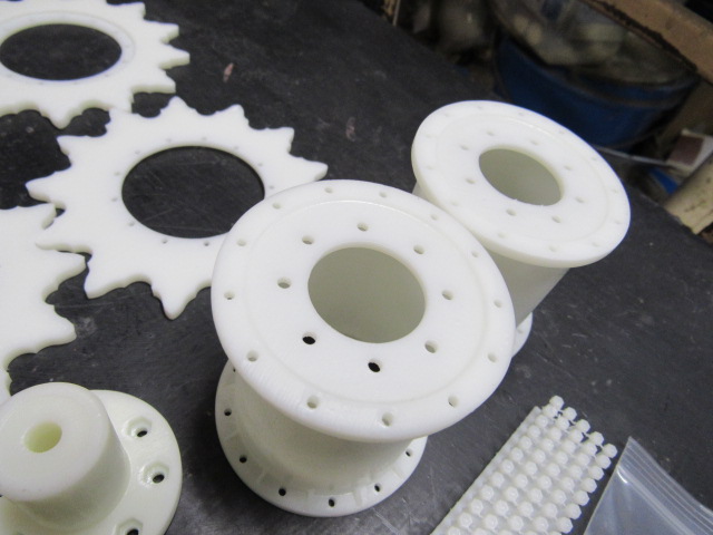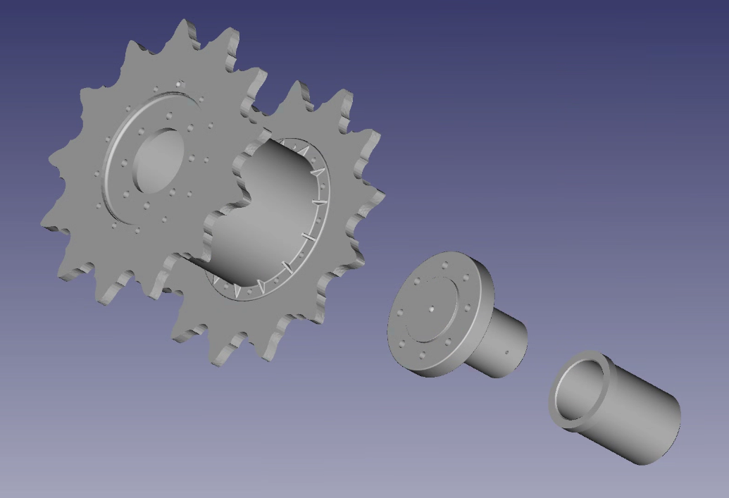 HD 3D Printed Sherman family rear engine deck faux fasteners set. Set includes enough fasteners to complete 1 Sherman pattern vehicle rear engine bolt details, plus extras...$25.00 each set 3D Printed VVSS Sherman front Sprockets set. The set includes enough parts to assemble 2 drive sprockets. The set includes the sprocket parts, final drive hubs, metal fasteners, 3D printed detail fasteners, and steel shafts. The set is designed to work with the ECA final drives (sold separately) and are designed to work with the Dragon sherman tank track, Sprockets are sold in 3 options, with ribbed center drum, smooth center drum, and 1 of each...$250.00 each set