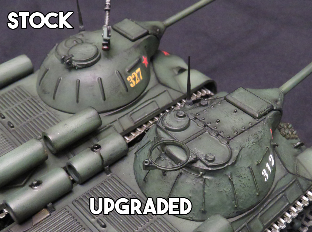 1/48th scale HD 3D Printed Aurora / Atlantis Russian JS3 detail upgrade set. Set is designed to upgrade the old Aurora or the new Atlantis rerelease JS3 kit with improved detailing. This includes a revised rear plate, spare tracks, Tow hook mounts, Driver's hatch, turret hatches, AAMG mount, Exhausts, top turret access plate, and more...$25.00 each set