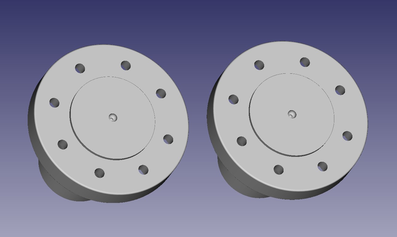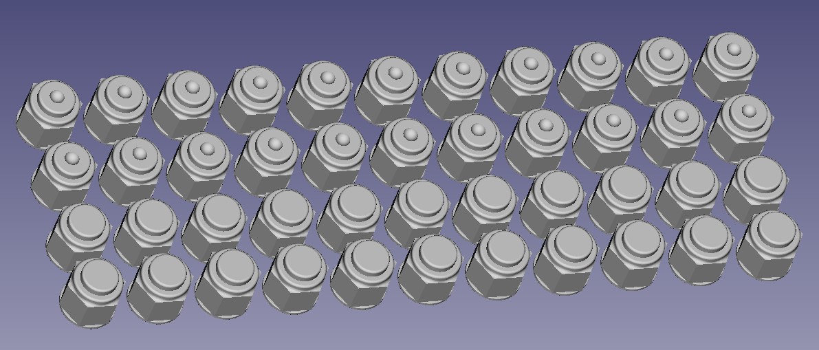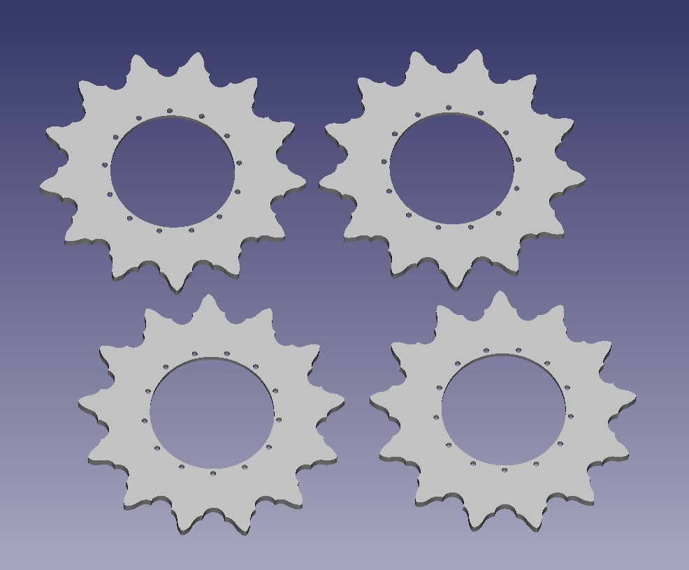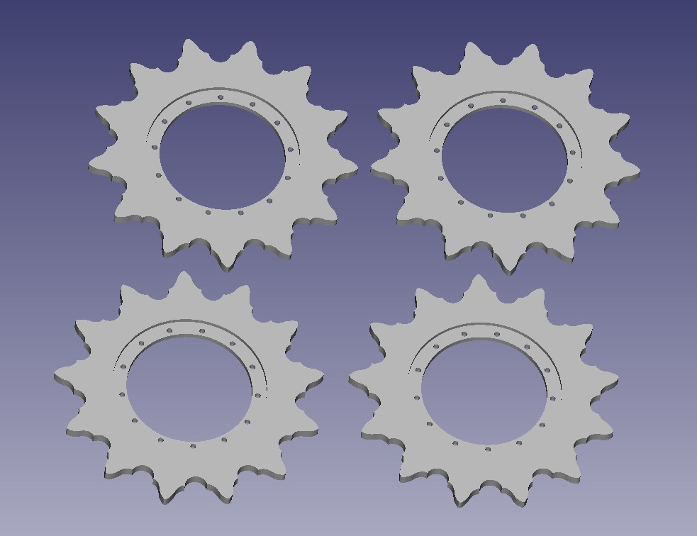 3D Printed Armortek Sherman tank family sprocket bolt cover detail shoe set. The set is designed to cover the stock M3 fasteners on the Armortek Sherman tank drive sprocket to give the outer appearance a more accurate look. The shoes slip over the stock fasteners. Also there are two styles: dimpled and non dimpled. The set comes with enough to equip one tank and there are plenty extras as spares...$30.00 each set
