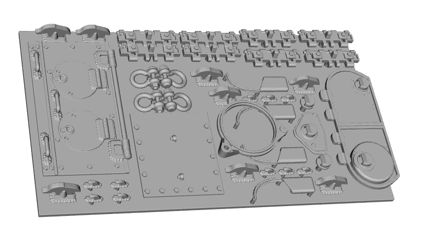 1/48th scale HD 3D Printed Atlantis M46 Patton complete detail set. Set is designed to upgrade the Atlantis rerelease Aurora M46 patton tank kit with the missing engine grills and many other detail components. The grills have the same appearance to the original stock ones so they will blend in with the molded in details once fitted. The set also includes a replacement turret .50 cal pintle mount, headlight brush guards, new periscopes, new loaders hatch, vane sight / gunners sight guard box cluster, exhaust heat shields, rear turret 50.cal storage rails / pintle, MP65 antenna bases, rear travel lock, siren brush guard, and front hull tool rack...$25.00 each set
